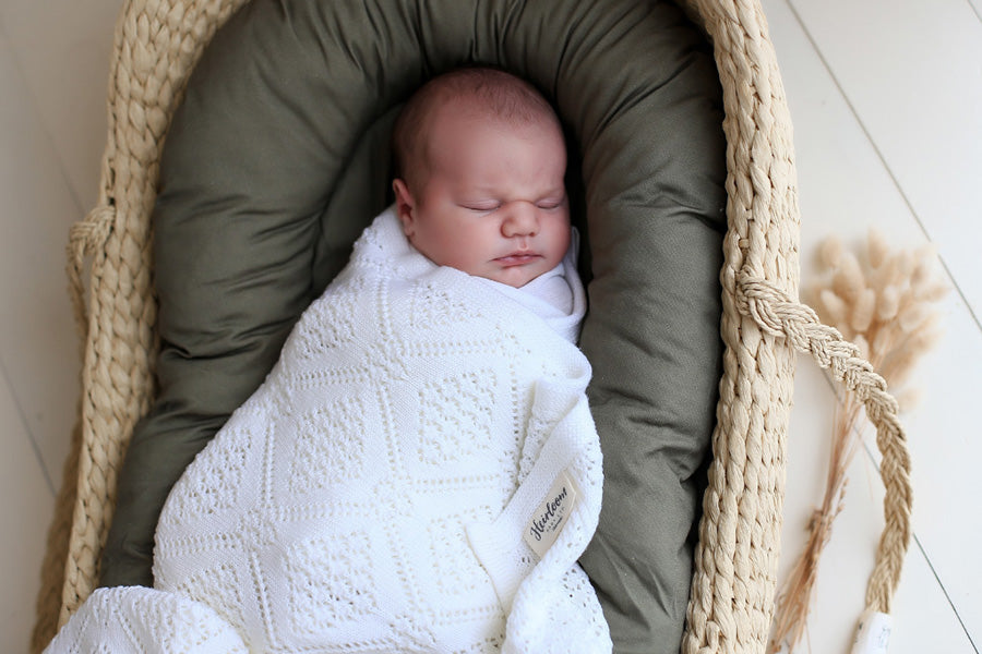 There's Merino.... and there's Merino. Using a luxurious grade of anti-pill Merino, and being naturally resistant to flame, dirt and creasing, Heirloom Baby blankets maintain their shape and appearance amazingly well. And they have a beautiful, silky soft feel - perfect for baby.